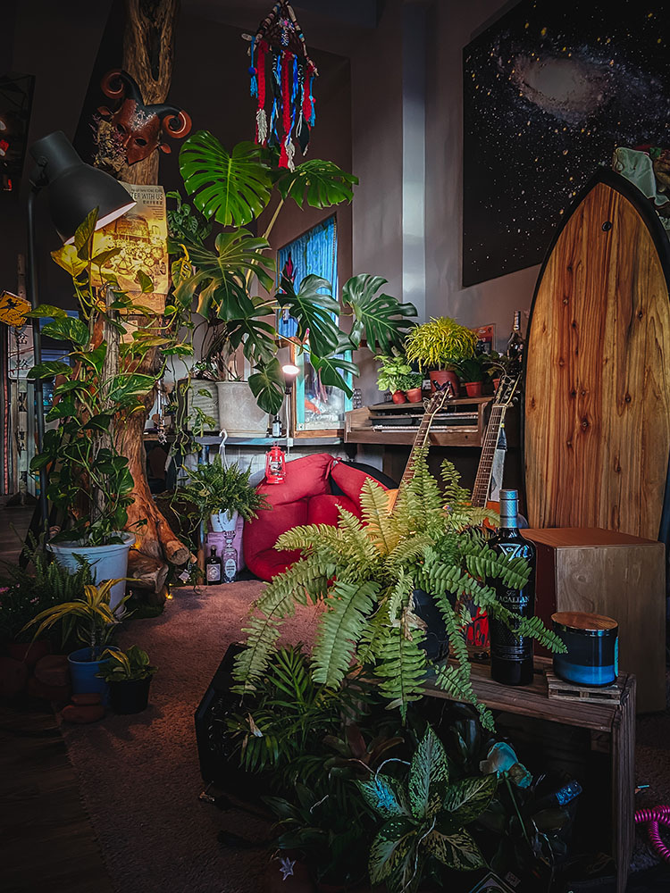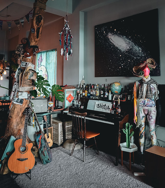 忽然視訊電話響起,另一個主人 Birdy 熱烈的聲音,伴著他甩動的前衛雷鬼頭造型傳遞異國活力,為了影像的狂想永遠在路上的他,與駐守在海邊的阿福,創造了這一個難以被定義的異想他方。